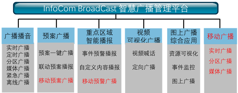 室外:音箱部门配置模拟/网络音箱,支持背景音乐、活动消息等媒体广播、同时支持分区广播、定时广播、离线广播,或公告、报警等实时广播、紧急广播;