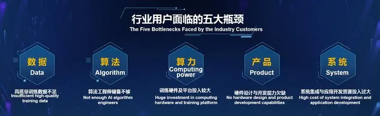 尽管AI需求非常旺盛,但AI在实体经济中落地并不容易。数据、算法、算力、产品和系统如五座大山横亘眼前。显然只有极少数的头部企业可以去突破这些瓶颈,传统行业和小微企业玩家几乎不可逾越。